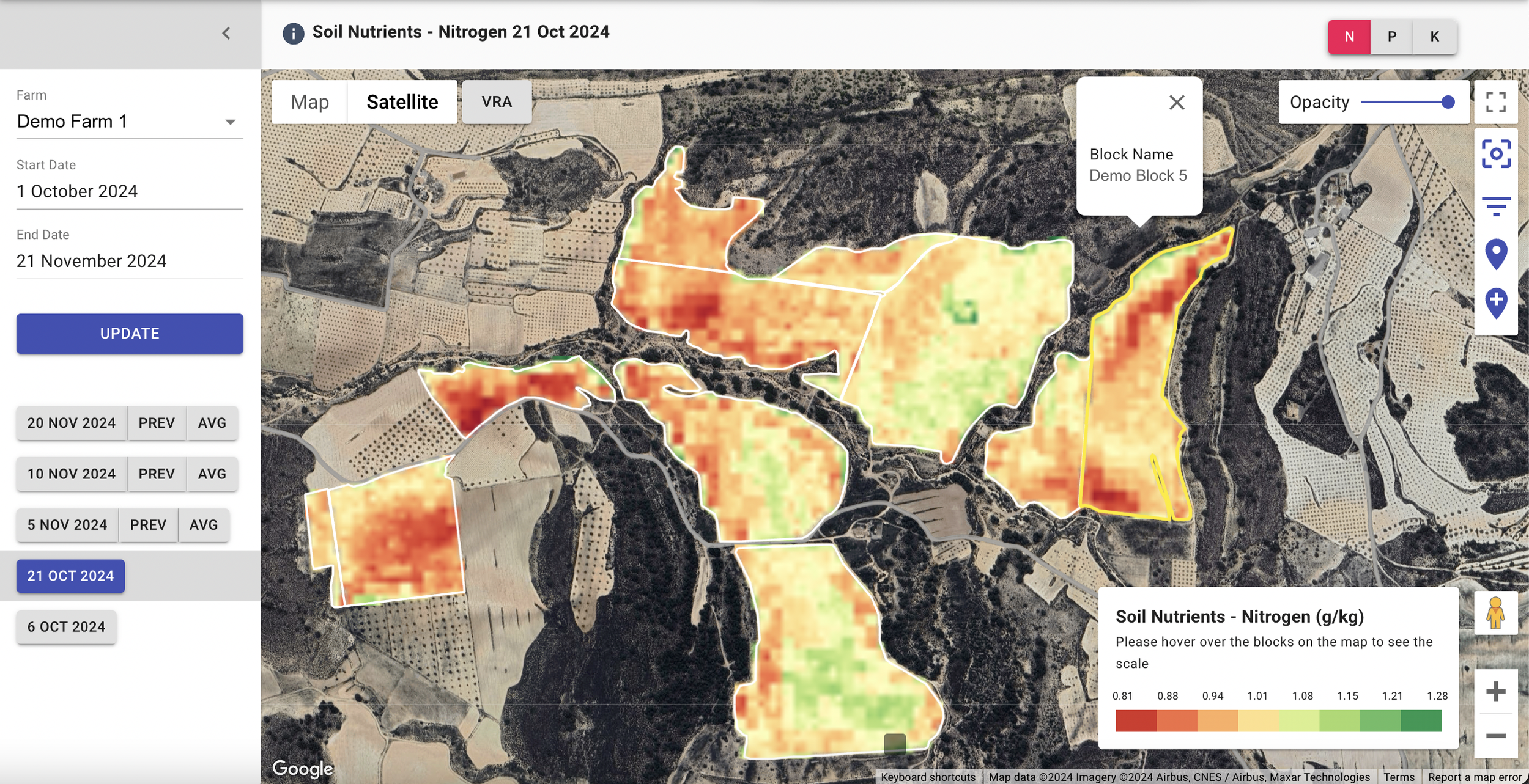 Deep Planet’s nutrient maps for large scale regional agricultural monitoring with weekly or monthly frequency.